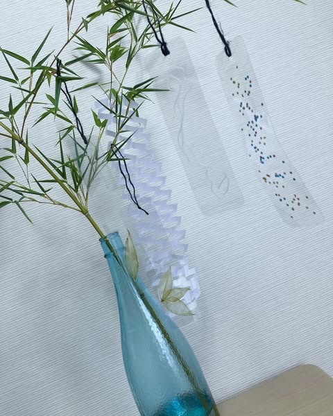 夏本番☀️透明な短冊に透明な葉っぱで涼しげ🌱