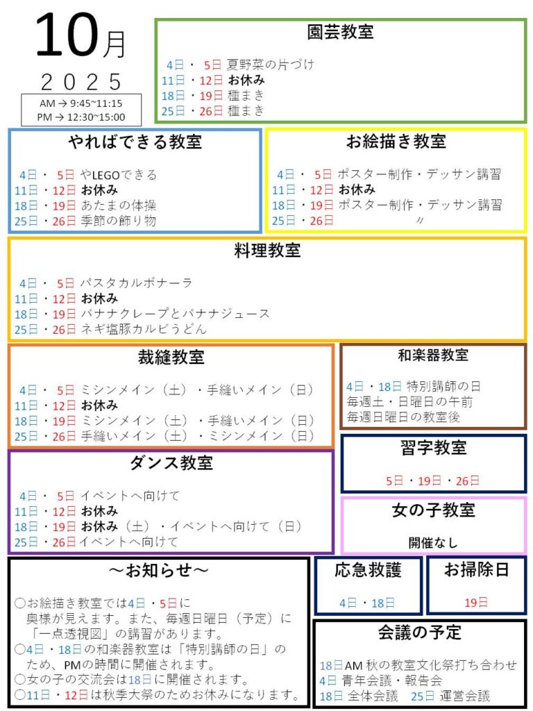 10月のカレンダー