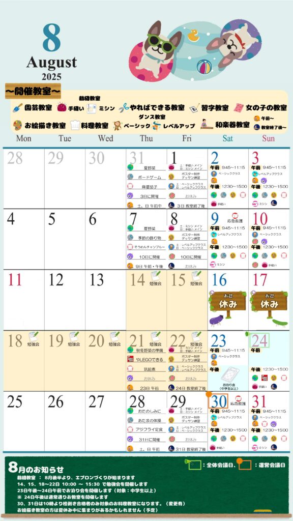 8月のカレンダー